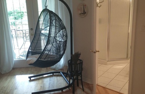 The Garden Suite features a private deck with access to our English Gardens. One of the best features of the room is the amazing swing chair, we think it is the most comfortable chair ever made. The room also features a King size bed and European inspired decorations. Every guest receives a 20% discount at the By the Bay Lavender store in downtown Chemainus. Check us out @bythebaylavender . Homemade scones or muffins for breakfast with fruit and yogurt