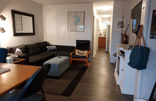 1 Bedroom, 3 Bed Lakefront cottage - just a few steps from the water. Great dock fishing, small beach, community pool, tennis court, club house full of books and games, two firepits, playgrounds, and a nice walking trail. Cottage comes fully equipped with a stove, toaster oven, blender, a stand up shower, electric fireplace and air conditioner. Wireless internet, and there are tons of DVDs to watch on the flatscreen TV. The couch pulls out to a double bed, the bedroom has a double-on-the-bottom single-on-the-top bunkbed,. Cottage has a patio with BBQ, table and chairs. 25 minute drive to Orillia, you won't want to leave but won't be far away from town if you need to grab anything. Great location for young kids, frog hunting and exploring galore. Spend your days lounging by the pool, driving to one of the many trails Muskoka has to offer, exploring the lakeside, or relaxing by the beach! BBQ on the patio and pool noodles in the deck box are waiting for you! We are very responsive hosts and would love to hear from you; Shoot us a message if you have any questions or inquiries. Thanks, Marika and Dave