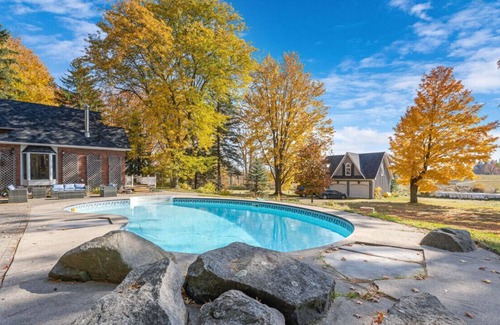 Hidden Gem w/ Hot Tub + Backyard + Fire Pit + Pool is located in Mulmur. Hidden Gem w/ Hot Tub + Backyard + Fire Pit + Pool provides accommodation, featuring Pool, TV, Private Pool, among other amenities. This House features Pool, TV, Private Pool, to make your stay a comfortable one.