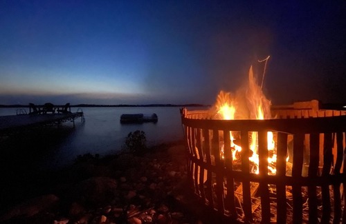 The fun continues outside. There are bikes for island rides, croquet and horseshoes on the lawn, a trampoline and tire swing for kids, and a historic County canning bucket firepit down by the water. It's perfect for sunset bonfires, sharing stories, and roasting marshmallows.