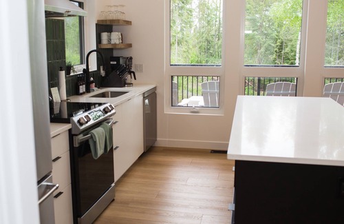 Welcome to The Wren cabin at The Kingswood, Golden, BC. A private modern cabin on 38 acres, 20 mins from Golden with a hot tub! Enjoy cozy modern amenities, a wood-burning fireplace, vaulted ceilings, and stunning mountain views. Sip morning coffee on the 8ft deck. Verification required after booking: From Superhog (Know Your Guest).