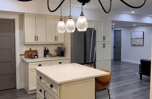 M’s Studio is your home away from home. Quiet basement apartment with a master suite, luxury high end kitchen, washer and dryer in suite and a couch that transforms into a twin bed.