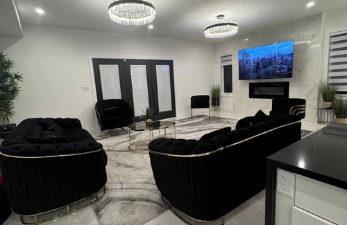 "Welcome to our spacious and modern 4-bedroom home, built in 2022. Perfect for families or groups, this home features 2.5 washrooms, a cozy living room, and a family room equipped with a mini fridge and one of two large TVs. Relax in the luxurious bathtub, refresh in the shower room, or stay active on the treadmill. With 2 king-size beds, 2 queen-size beds, and stylish tiled interiors, this home offers comfort and elegance for a memorable stay."