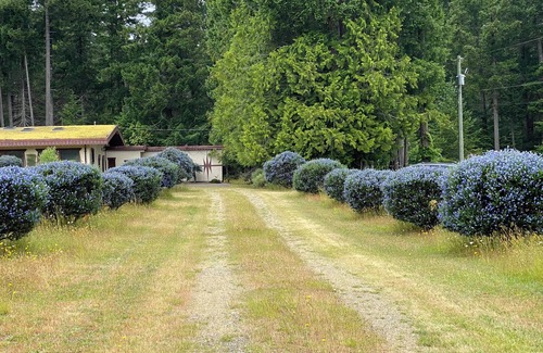 This property is large mostly covered by tall trees such as red cedars, hemlock, birch trees. We suggest wearing comfortable shoes if you plan on exploring all of it. Of the 30 acres, approx. 13 acres is grassland filled with natural wildflowers during the spring and summer. The rest of the acreage is forest with a private trail that weaves through the trees and across a stream. There is a lot of wildlife including otters, northern pygmy owls, belted kingfishers, bald eagles, ravens, wood peckers, goldfinches, hummingbirds, tree frogs and etc. Great for birdwatching! There is a gazebo on the island in the middle of the lake that makes a quiet spot for reading or bird watching. Please keep front gate closed to keep deer out. The 13 acre grassy area is fully deer fenced. Dogs can go off leash. The guest suite stretches out from the main house with its own entrance. The many windows in suite directly face the garden and Vancouver island coastal mountain views.