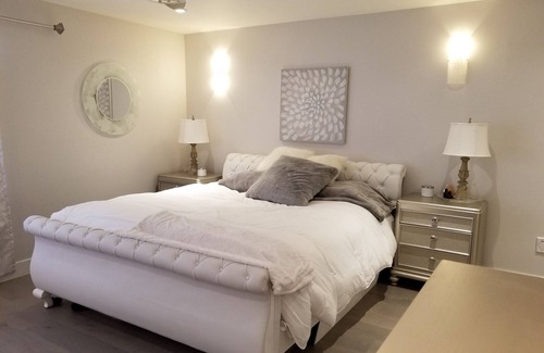 Our newly fully rebuilt home has a new luxury private guest suite with a scenic view of Boundary Bay, North Shore Mountains, and it backs onto a forested green space. Its a lovely setting. The suite has its own private entrance into the walkout ground level suite at the rear of the home. This suite is the only guest suite, and you will have access to our lovely backyard including large patio, firepit, bbq, patio chairs, and rear lawn. The patio sits beside a lovely pond at the end of a babbling brook water feature that adds to the already beautiful forestedsetting beside mother nature. You will have shared access to our heated outdoor workout room beside the suite that also has a great view.
