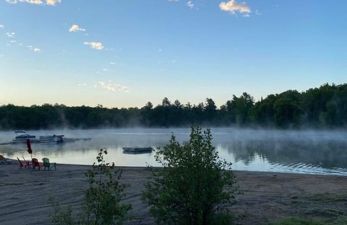 Located at Tiny Village Parry Sound, a private camping park with amazing amenities and atmosphere, Blue Lake Bunkie offers the perfect road-trip glamping experience. Nestled on the beach of De Bois Lake and surrounded by a breathtaking view, it has all the amenities for a convenient stay.