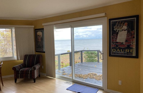 Very private, last property on a dead end road, private beach. All rooms windows and French doors are facing spectacular view of Lake Erie, huge manicured grass area for activities. Bird watching, golf course, national park near by. Campground walking distance. Cozy wood fireplace. Perfect vacation place to unwind from a busy city life. A writer's paradise. And only 10 min drive to Limington to experience life of a small city.