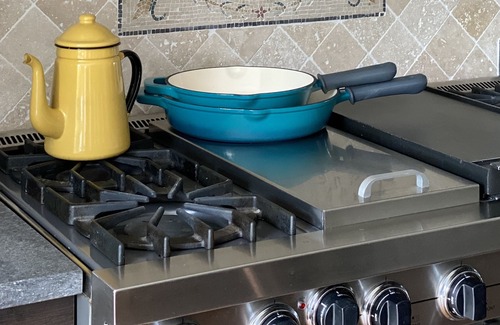 The home is the second floor of the house with three bedrooms and two baths with us living downstairs in the suite. We have a huge kitchen completely equipped to a chef's needs: henkel knives, cast iron enamel skillets, baking supplies, gas grill and 6 burner Viking stove. You are welcomed by fresh herbs and flowers. There are blackout curtains, a giant sectional couch for lounging and sleeping. The back deck is complete with table, chairs, love seat and chair for evening dining or morning coffee. Open the back wall for indoor outdoor living while playing jazz on the built in sound system.