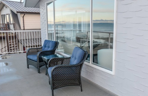 Our walk on waterfront home is perfect for beachcombing, bird watching, swimming in the hot summer months or storm watching from our beautiful wrap around decks. With fully stocked kitchens on both floors and great size entertaining spaces both inside and out, incredible ocean views from every room in the house, The Qualicum Beach House is a perfect get away for your holiday.