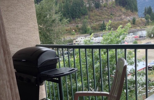 The Riverside is an ideal waterfront condo centrally located in Sicamous. We offer a safe, barrier free and fun environment for all ages in all seasons. Out location is a 5-minute walk to multiple amenities including the public beach, shopping and restaurants but far enough away from the hub of activity to have some peace and quiet. In the summer months, the rental comes with a designated boat slip in a recently installed new private dock on "The Narrows" providing access to both Mara Lake and Shuswap Lakes for hours of boating and fishing pleasure. There are plenty of business in town that offer a variety of water craft to fit any budget. Alternatively, you can just relax by the pool or hot tub and watch the boats go by from May to Sept